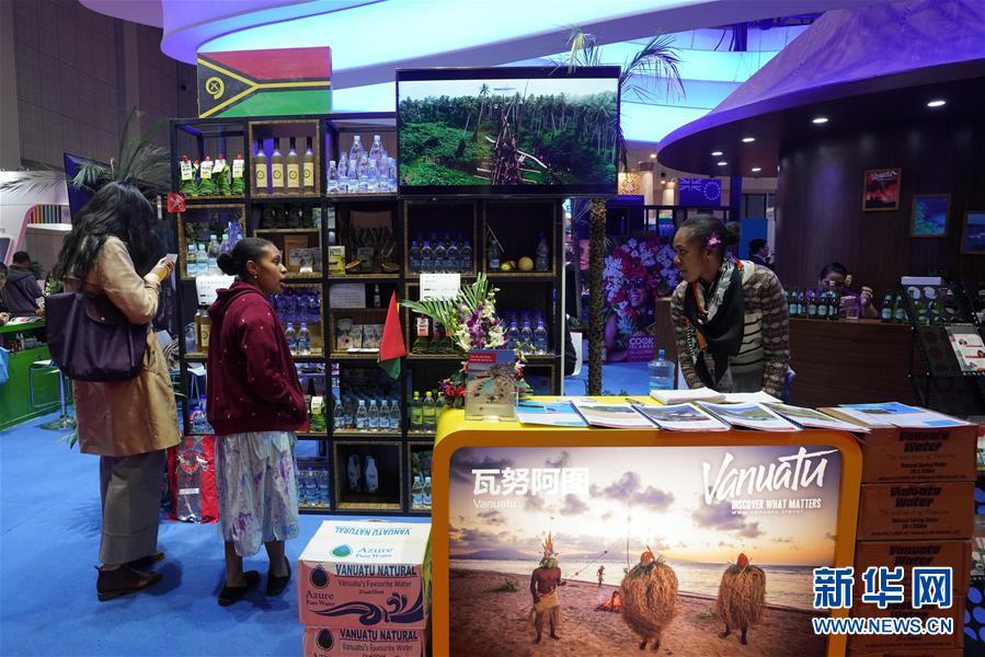 这是11月8日拍摄的太平洋岛国展区瓦努阿图展台。 中国国际进口博览会11月5日在上海开幕。国家贸易投资综合展(国家展)是中国国际进口博览会的重要内容,共有82个国家、3个国际组织设立71个展台。 新华社记者 程丽 摄