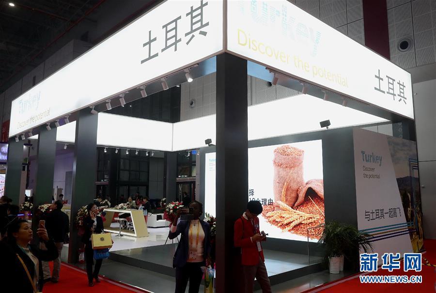 这是11月7日拍摄的土耳其展区。 中国国际进口博览会11月5日在上海开幕。国家贸易投资综合展(国家展)是中国国际进口博览会的重要内容,共有82个国家、3个国际组织设立71个展台。 新华社记者 陈飞 摄