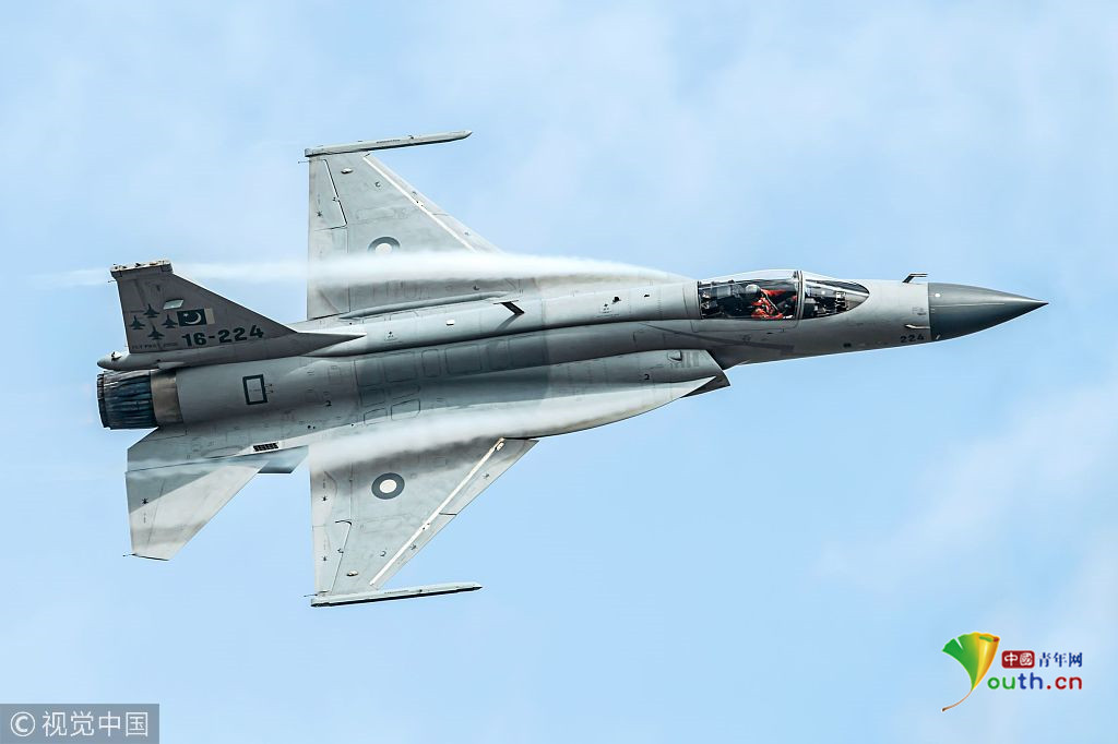 图四:2018年11月6日,广东珠海航展上,一架巴基斯坦空军枭龙战机进行飞行表演。