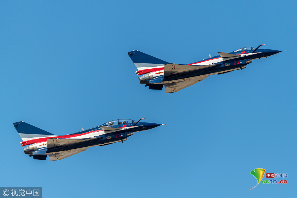 图六:2018年11月6日,广东珠海航展上,两架八一飞行表演队的歼-10A飞机。