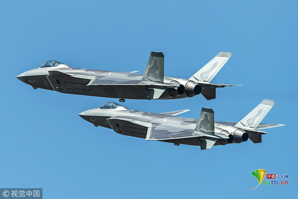 图七:2018年11月6日,广东珠海航展上,两架歼-20战机组成双机编队进行飞行表演。