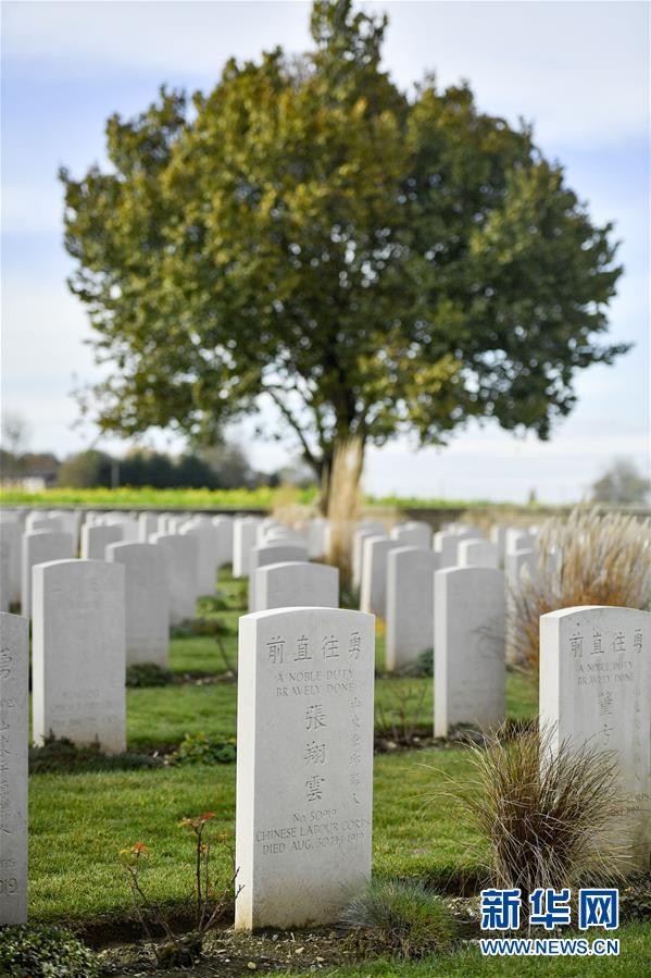 位于法国北部索姆省滨海努瓦耶勒市的诺莱特华工墓园是欧洲最大的华工墓园,共有884名第一次世界大战期间遇难的华工在此长眠。11月11日是第一次世界大战停战100周年纪念日。新华社记者 陈益宸 摄