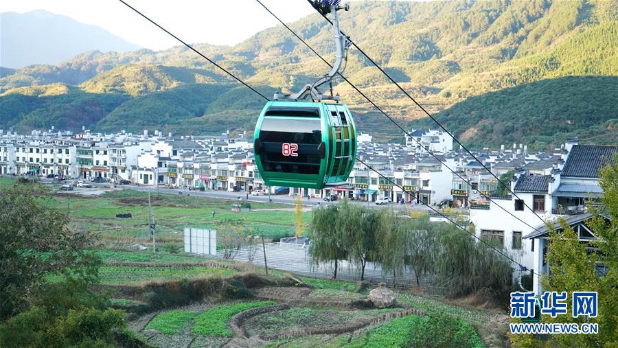 11月9日,江春花乘坐缆车下山回家。新华社记者 胡晨欢 摄