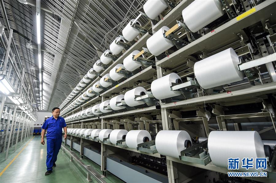 工作人员在位于苏州市吴江区的恒力集团化纤智能化加弹车间进行巡检作业(10月31日摄)。 新华社记者 李博 摄