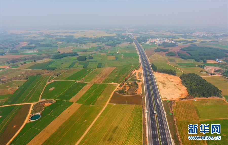 11月10日无人机拍摄的广西柳南高速公路。 近年来,广西在海、陆、空立体式推进与东盟国家的互联互通,扎实推进“高速县县通、高铁市市通、民航片片通、内河条条通”建设。目前高铁运营里程1751公里,高速公路总里程突破5000公里,沿海和内河港口年吞吐能力分别达2.5亿吨和1.1亿吨,机场旅客年吞吐能力近3000万人次,内外交通便捷度全面提升。 新华社记者 黄孝邦 摄