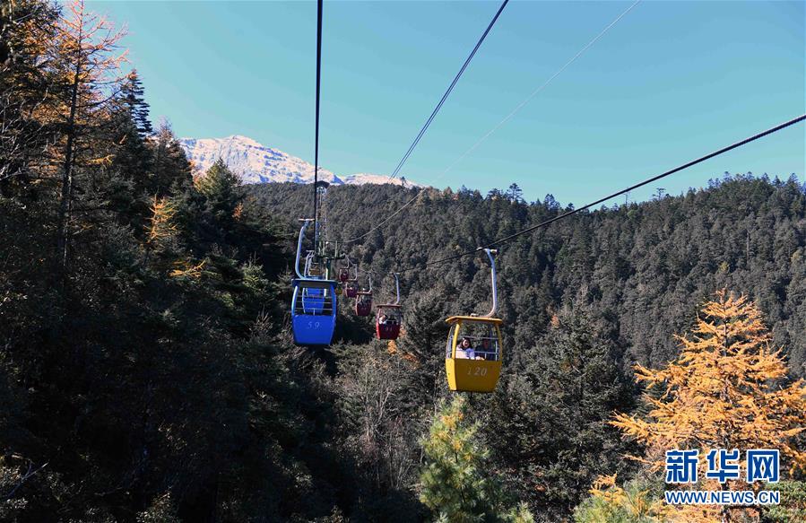 11月10日,游客乘坐缆车观赏丽江玉龙雪山风光。 新华社记者杨宗友摄