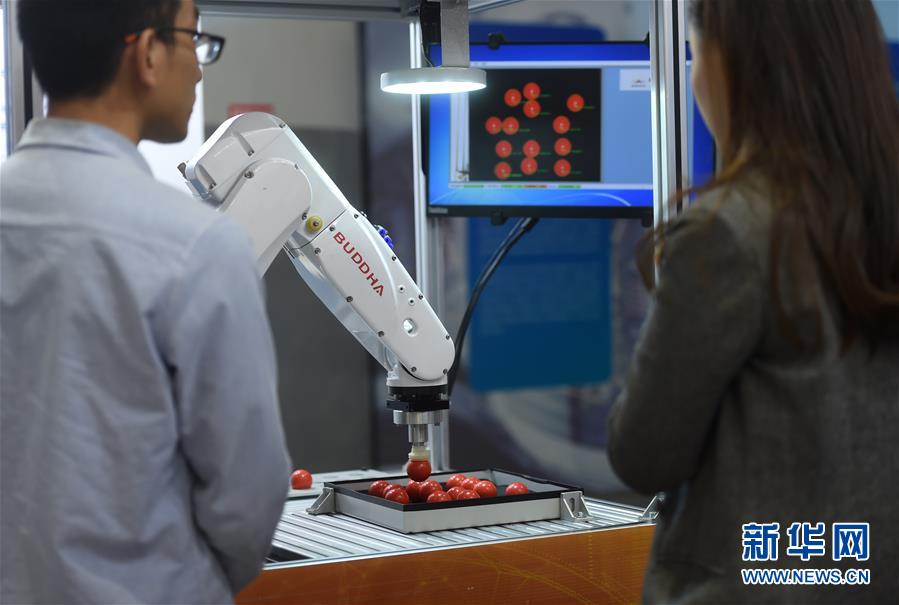 这是展出的一款工业机器人(摄于11月10日)。 新华社记者韩传号摄