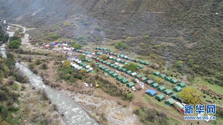 这是西藏昌都市江达县波罗乡热多村临时过渡安置点(10月14日无人机拍摄)。新华社记者刘东君摄