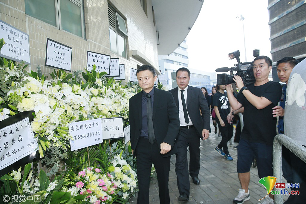 香港,已故著名武侠小说家金庸(查良镛)香港设灵。图为马云现身致哀。图片作者:null