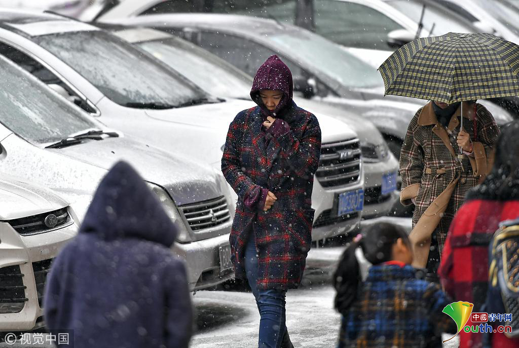 乌鲁木齐迎雨雪降温天气 风雪中民众脚步匆匆