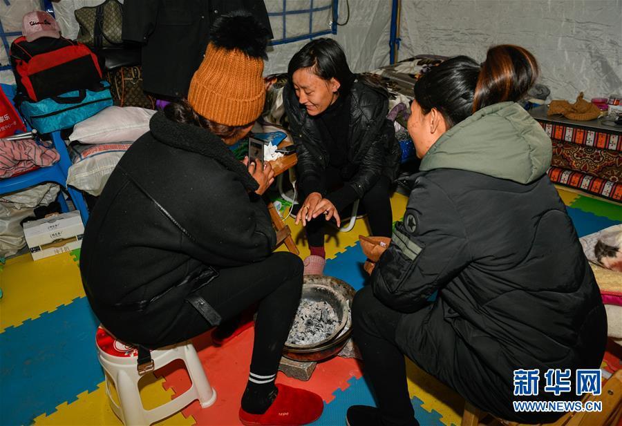 在西藏昌都市江达县波罗乡康扎西安置点,群众在帐篷内取暖(11月11日摄)。 西藏自治区江达县波罗乡康扎西安置点,离波罗乡政府直线距离约3公里,位于一处地势开阔平缓的山谷中,比堰塞湖水面高出100多米。10月11日金沙江白格段山体滑坡发生后,当地就在这里设立了安置点,安置附近受灾群众。 新华社记者 刘东君 摄