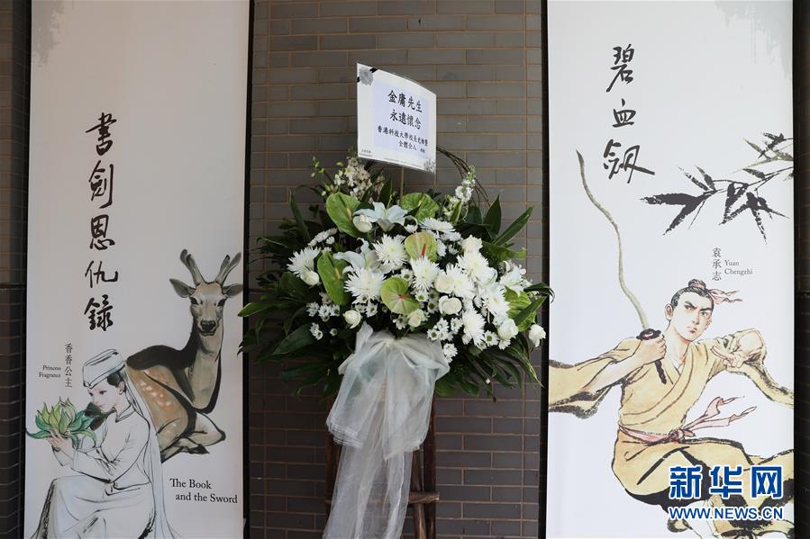 这是11月12日拍摄的香港文化博物馆外摆放的鲜花。 著名作家金庸10月30日在香港逝世,享年94岁。他的丧礼11月12日在香港殡仪馆举行。为便于公众向金庸作最后道别,香港文化博物馆内的“金庸馆”12日至30日设置吊唁册,12日当天就有数百位读者及市民前去致敬缅怀。 新华社记者 吴晓初 摄