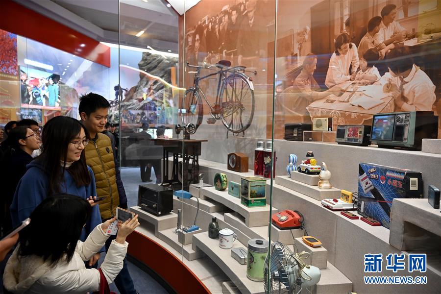 11月15日,参观者在“历史巨变”展区观看生活用品陈列。