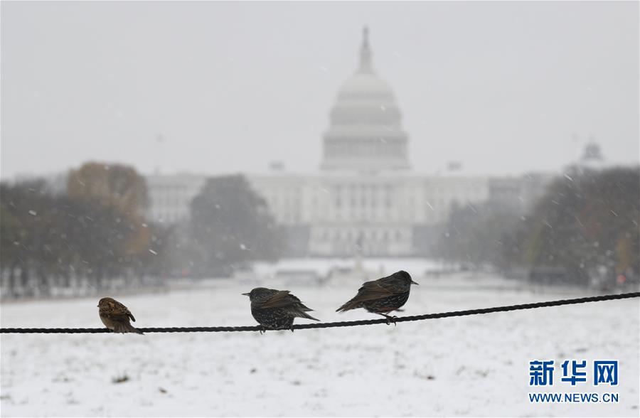 当日,美国首都华盛顿迎来今年首场降雪。