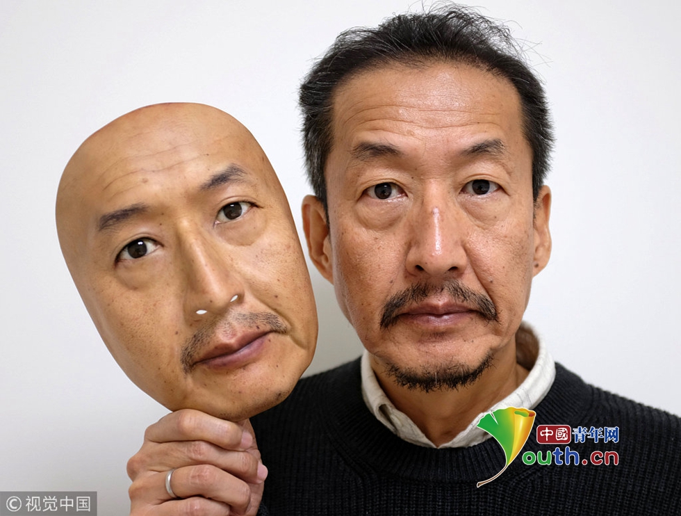 当地时间2018年11月15日,日本大津市,REAL-f公司总裁Osamu Kitagawa 展示高仿真的“3D人脸面具”。图片作者:KWIYEON HA/视觉中国
