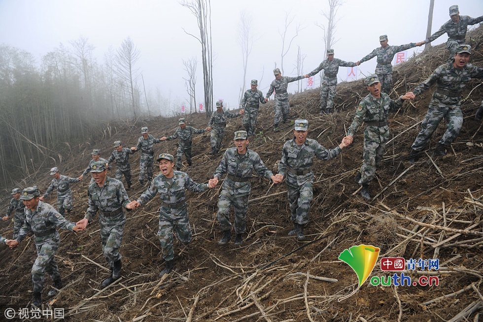 2018年11月16日,南部战区陆军云南扫雷大队官兵在云南省麻栗坡县老山西侧坝子雷场手拉手徒步验收已扫雷场。