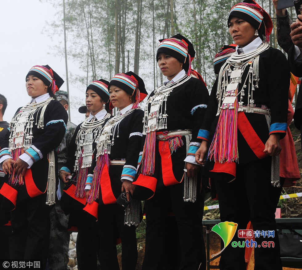 2018年11月16日,云南省麻栗坡县猛硐瑶族乡村民盛装参加在老山西侧坝子雷场组织的中越边境云南段已扫雷场移交仪式。图片作者:彭希/视觉中国