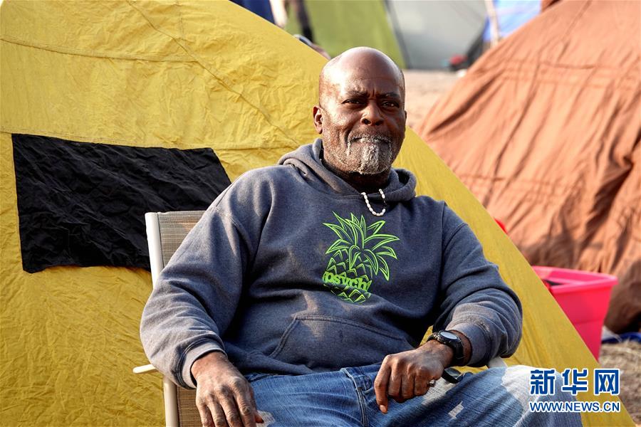11月18日,在美国加利福尼亚州比尤特县奇科,灾民在沃尔玛停车场搭起帐篷暂居。 新华社记者吴晓凌摄