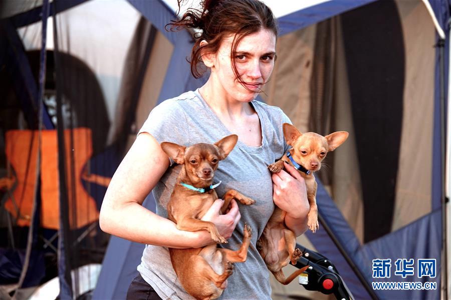 11月18日,在美国加利福尼亚州比尤特县奇科,灾民在沃尔玛停车场搭起帐篷暂居。  新华社记者吴晓凌摄