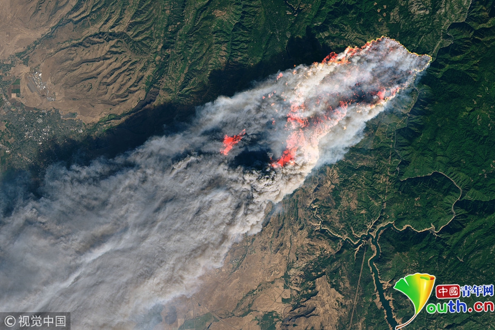 NASA公布加州山火卫星照片 火势向海边蔓延