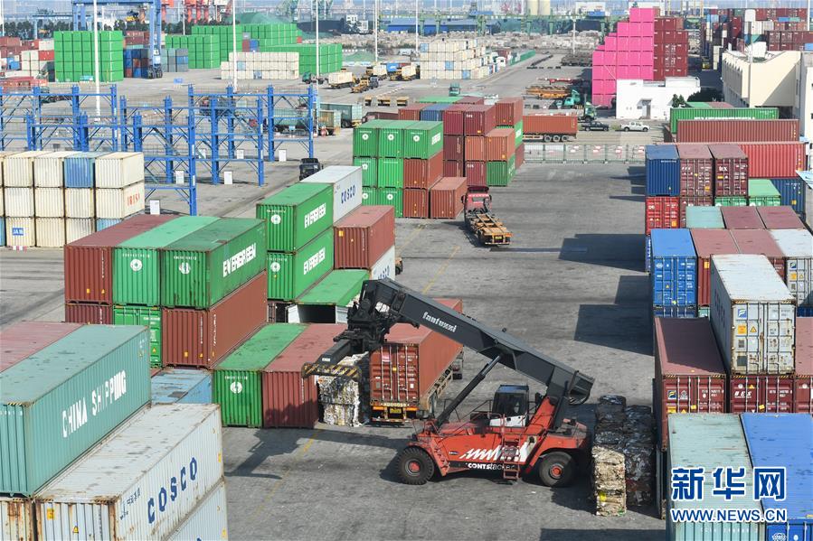 11月15日,福建自贸区厦门片区东渡码头内一派繁忙。 新华社记者姜克红摄