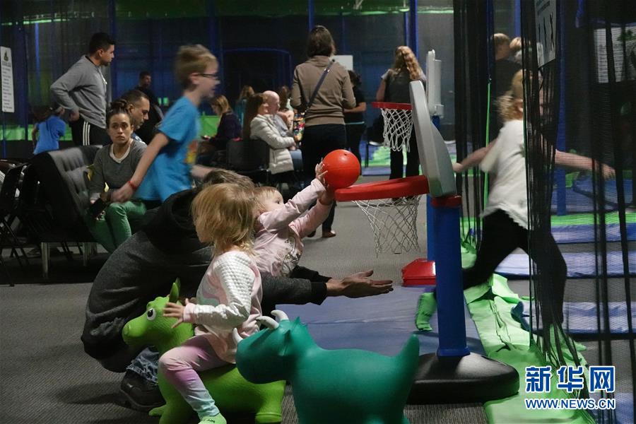 11月20日,在美国加利福尼亚州比尤特县奇科的一处游乐场,家长陪孩子在亲子聚会上做游戏。该活动旨在通过游戏缓解灾区儿童的心理创伤。