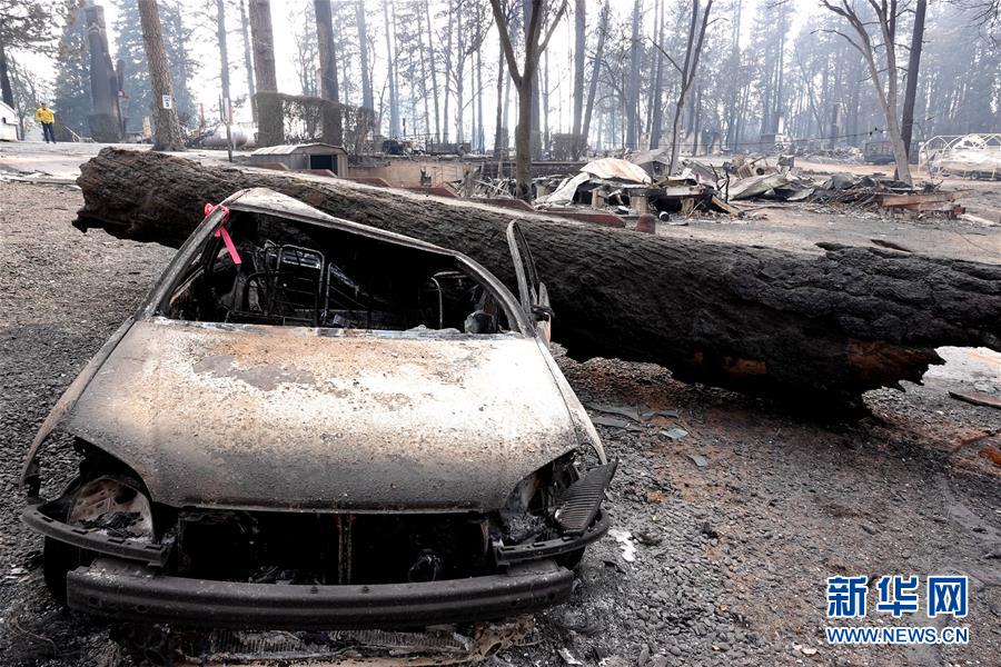 这是11月20日在美国加利福尼亚州比尤特县天堂镇拍摄的山火废墟。
