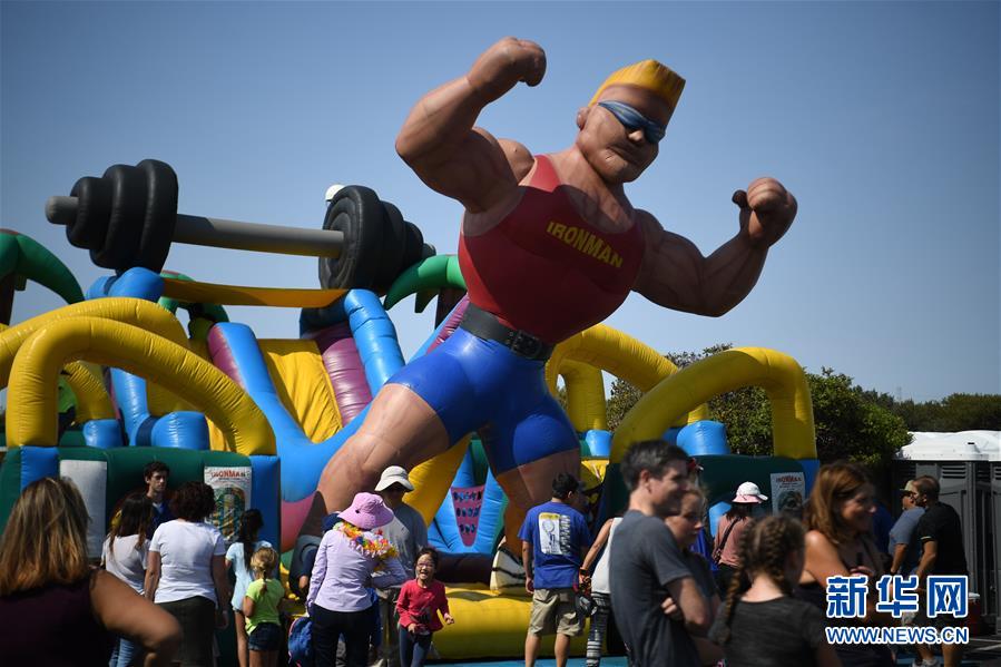 8月11日,在美国旧金山湾区,人们在“脸书节”的游戏区游玩。当日,旧金山湾区脸书园区举行“脸书节”,人们在活动中欣赏文艺表演,品尝美食,乘坐游乐设施等,活动收入将捐给慈善团体。新华社记者吴晓凌摄