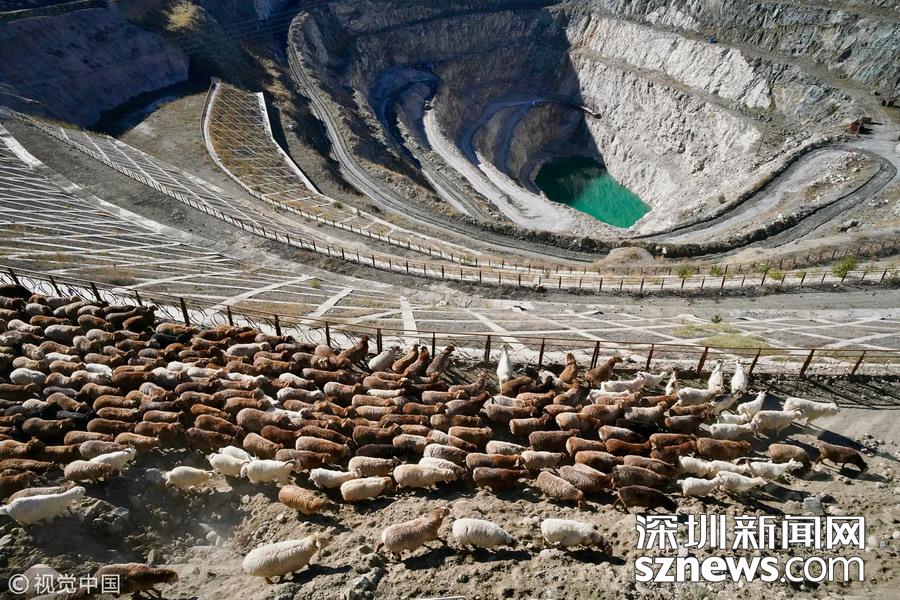 深圳新闻网讯 2018年09月19日 ,新疆阿勒泰牧民转场,经过三号矿坑。可可托海镇 是依托稀有金属而发展起来的一个独具特色的工业小城镇,曾是新疆有色 金属工业发展的源头。这里曾由中苏合营成立新疆有色公司阿山矿管处, 开始大规模开采珍稀矿藏。到1955年苏方撤离时,可可托海已基本形成一 个矿山集镇。