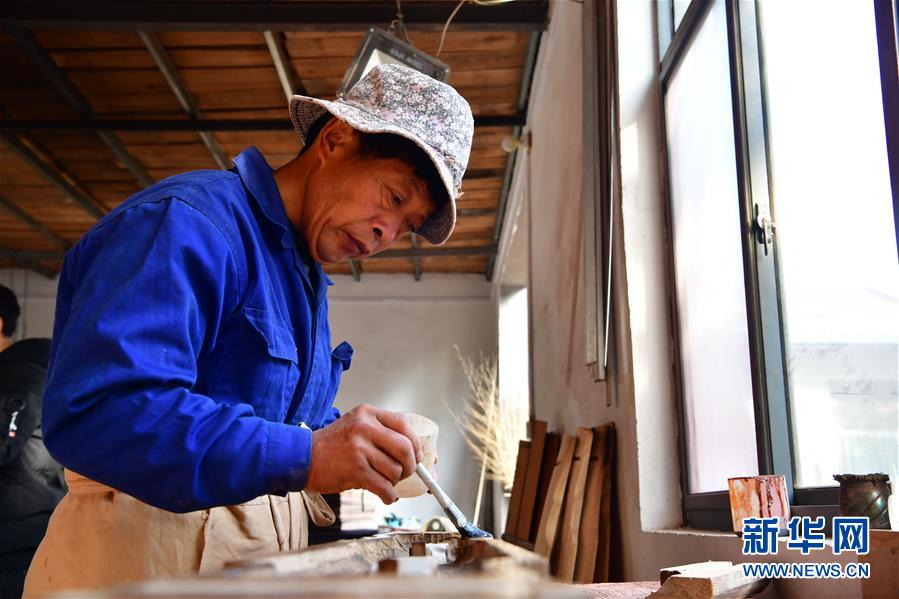 在河南兰考县固阳镇徐场村墨武琴坊,一位工人在生产车间里制作古琴(11月9日摄)。新华社记者冯大鹏摄