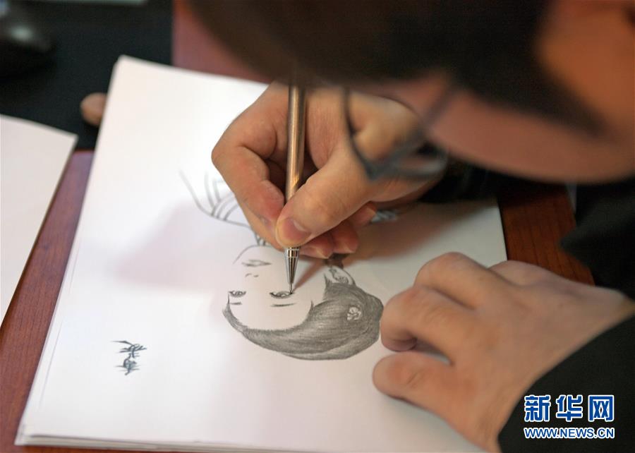 11月23日,盛京满绣工作室工艺师正在绘制绣品的草图。新华社记者杨青摄