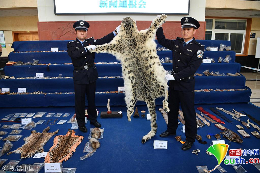 11月23日,现场展示警方查获的野生动物制品。当日,昆明市森林公安局向媒体通报,破获一系列特大非法收购出售珍贵濒危野生动物及其制品案件。