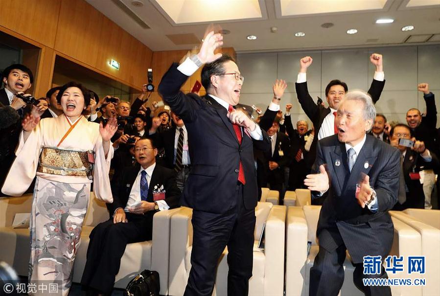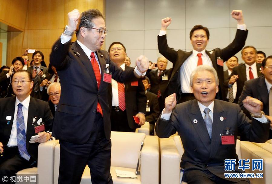 日本大阪当选2025年世博会举办城市 日代表团成员兴奋欢呼