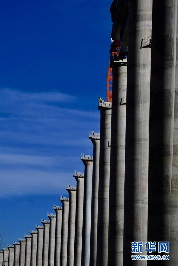 中铁十一局的工人在川藏铁路拉林段昌果特大桥进行铺轨作业(10月16日摄)。 近日,川藏铁路拉萨至林芝段昌果特大桥开始铺设行轨排、架设梁片,标志着川藏铁路拉林段正式进入铺轨阶段。 新华社记者 普布扎西 摄