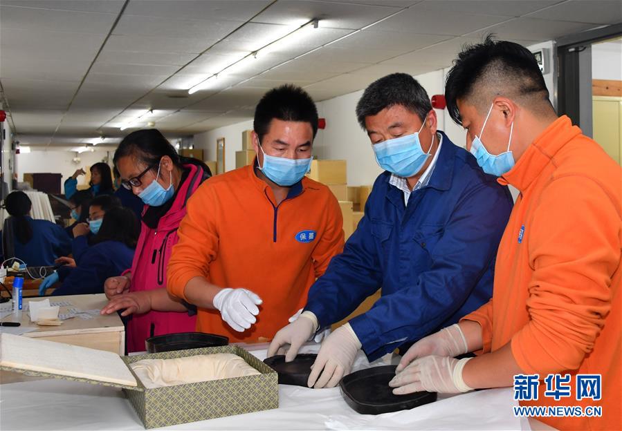工作人员在孔府文物档案馆内仔细包装即将运输的文物(11月12日摄)。 11月26日,耗时5年建成的孔子博物馆在孔子故里山东曲阜开馆试运行,首批2000多件文物搬出孔府文物档案馆,入住孔子博物馆,今后将有69万多件孔府文物逐批“乔迁新居”。 新华社记者 朱峥 摄