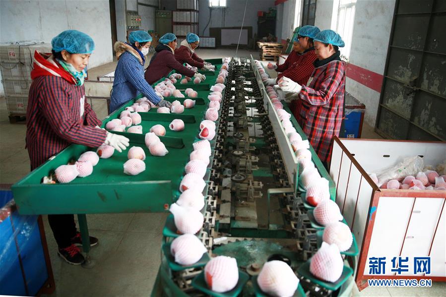 11月26日,河北省内丘县一扶贫龙头企业的员工在分拣苹果。 近年来,河北省内丘县不断推进产业扶贫,探索“龙头企业+贫困户”利益链接机制,通过扶贫资金入股、进厂打工等方式,提高贫困户的产业参与度和受益度,带动1300余户贫困户实现增收。 新华社记者 牟宇 摄