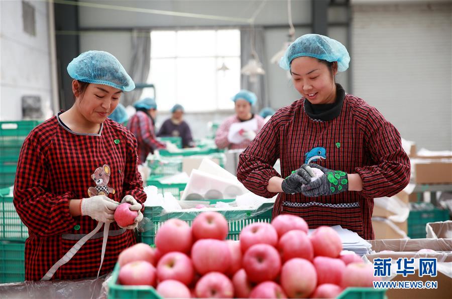 11月26日,河北省内丘县一扶贫龙头企业的员工在将苹果装箱。 近年来,河北省内丘县不断推进产业扶贫,探索“龙头企业+贫困户”利益链接机制,通过扶贫资金入股、进厂打工等方式,提高贫困户的产业参与度和受益度,带动1300余户贫困户实现增收。 新华社记者 牟宇 摄