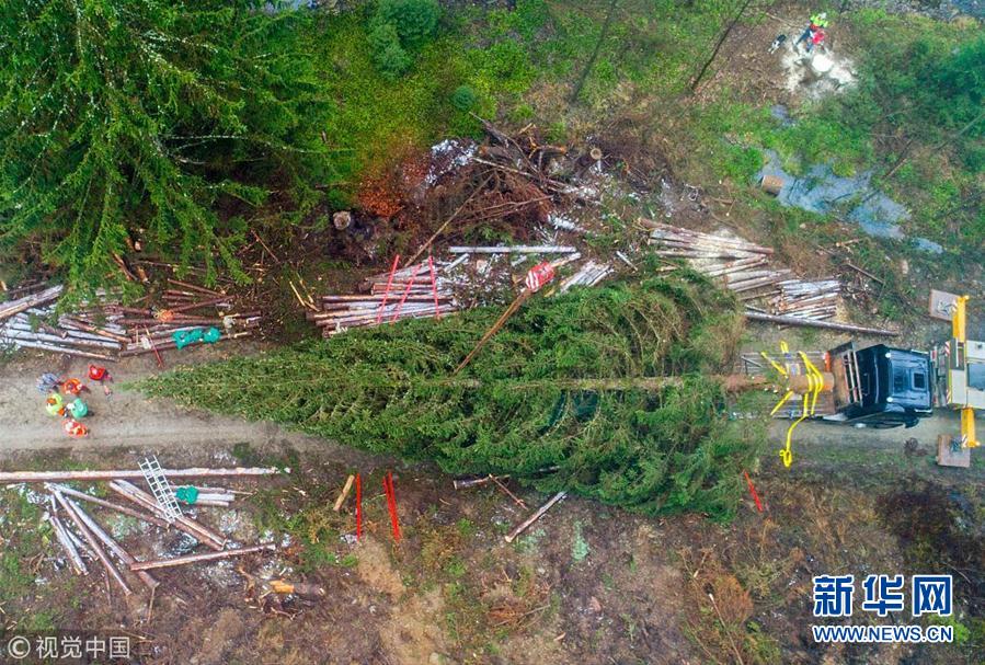 德工人为国会大厦准备圣诞树 动用起重机运输20多米高针叶树
