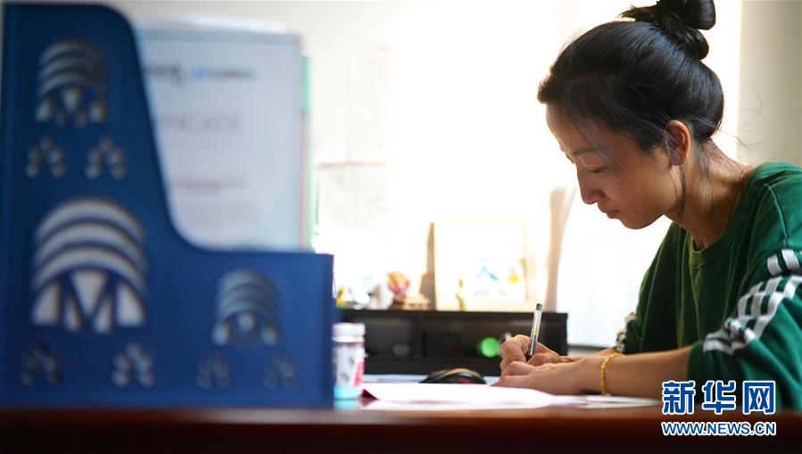 11月26日,曾文萍在学校的办公室内备课。