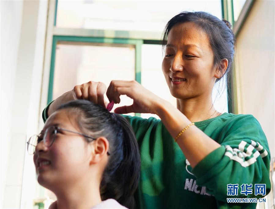 11月26日,曾文萍(右)在寝室为一名女生梳头。