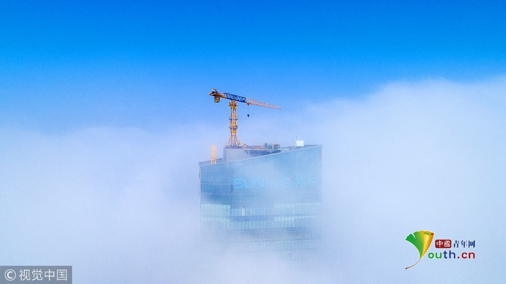 建筑总高度341.85苏宁坐立在七彩云端中,小城如同仙境一般。