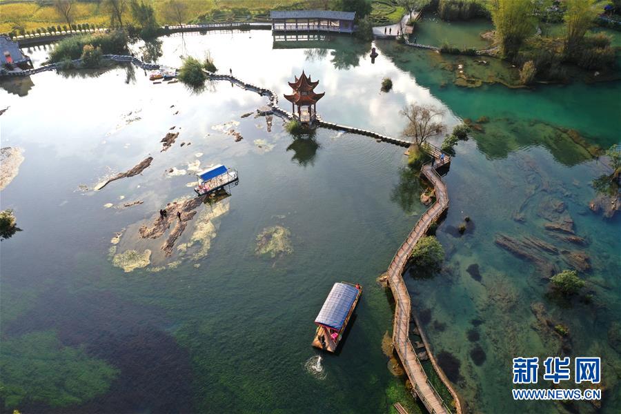 这是广西靖西市新靖镇鹅泉村景色(11月27日无人机拍摄)。鹅泉村位于广西靖西市新靖镇,因村中鹅泉而得名。冬日里鹅泉村泉水清澈,景色宜人。新华社记者周华摄