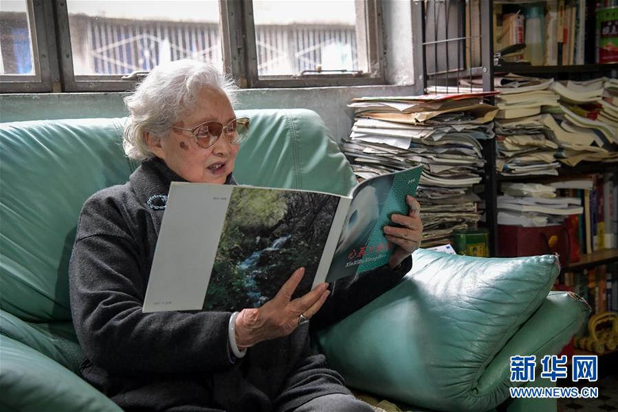 11月27日,金勖琪在四川成都的家中翻看印有她拍摄的照片的画册。新华社记者张超群摄