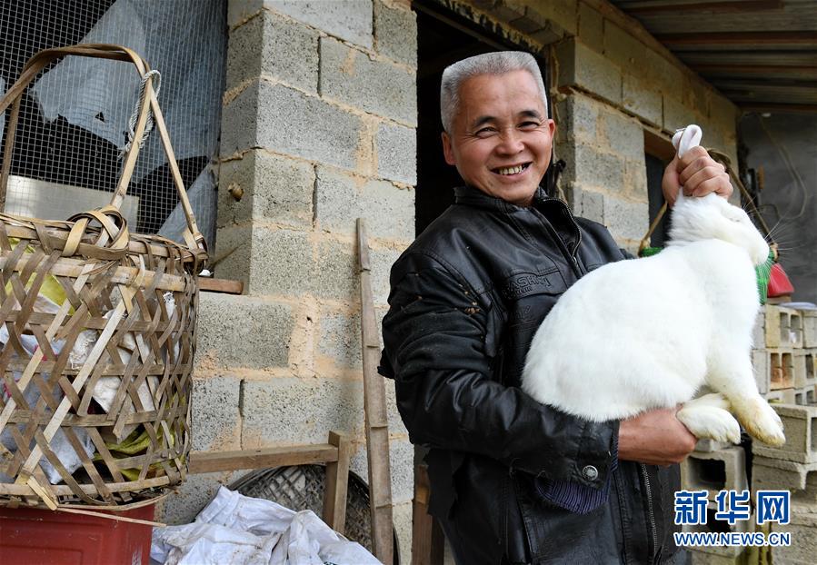 11月28日,在武夷山市岚谷乡后山村,肖流标展示他饲养的兔子。
