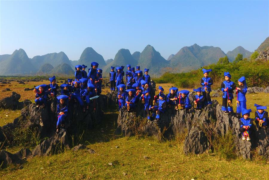 11月28日,靖西市安德镇中心小学山歌队队员在排练节目。 新华社记者 黄孝邦 摄
