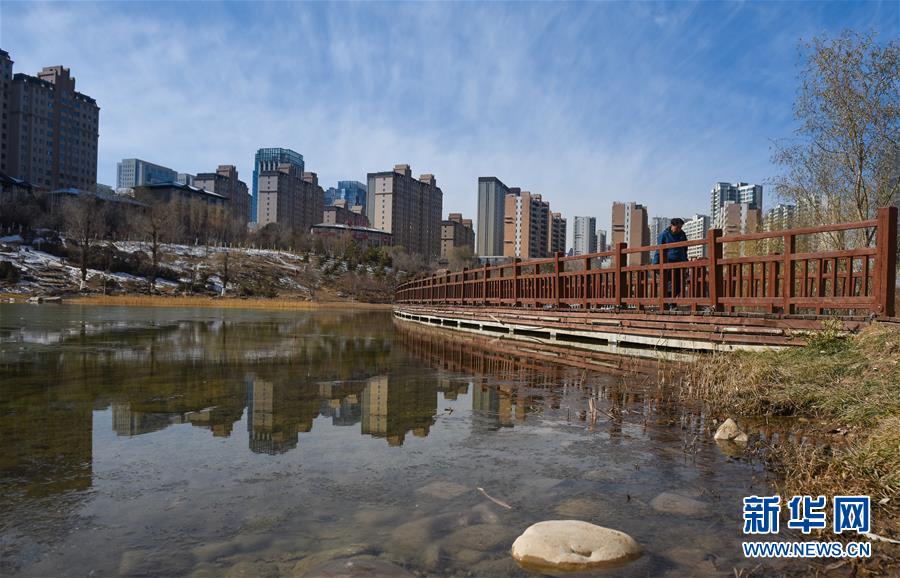 11月28日,一名市民在西宁市海湖新区的公园内行走。 新华社记者 吴刚 摄