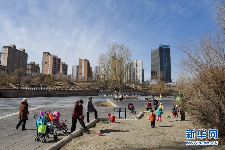 11月28日,几名市民带着孩子在西宁市海湖新区的公园内游玩。 新华社记者 吴刚 摄