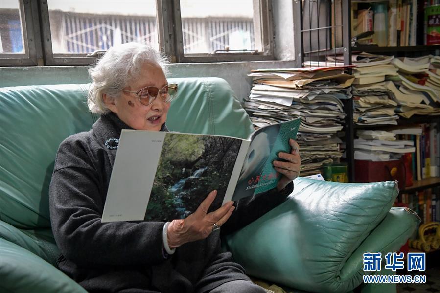 11月27日,金勖琪在四川成都的家中翻看印有她拍摄的照片的画册。大熊猫,古老的物种,世界级“萌宠”。有一位84岁的老人,四十年前曾身挎相机与熊猫亲密接触六年多,公开发表了一千多张熊猫照片,把熊猫介绍给全球的读者,被国内外的朋友亲切地称为“熊猫小姐”。她就是金勖琪,新华社第一代熊猫摄影师。新华社记者 张超群 摄