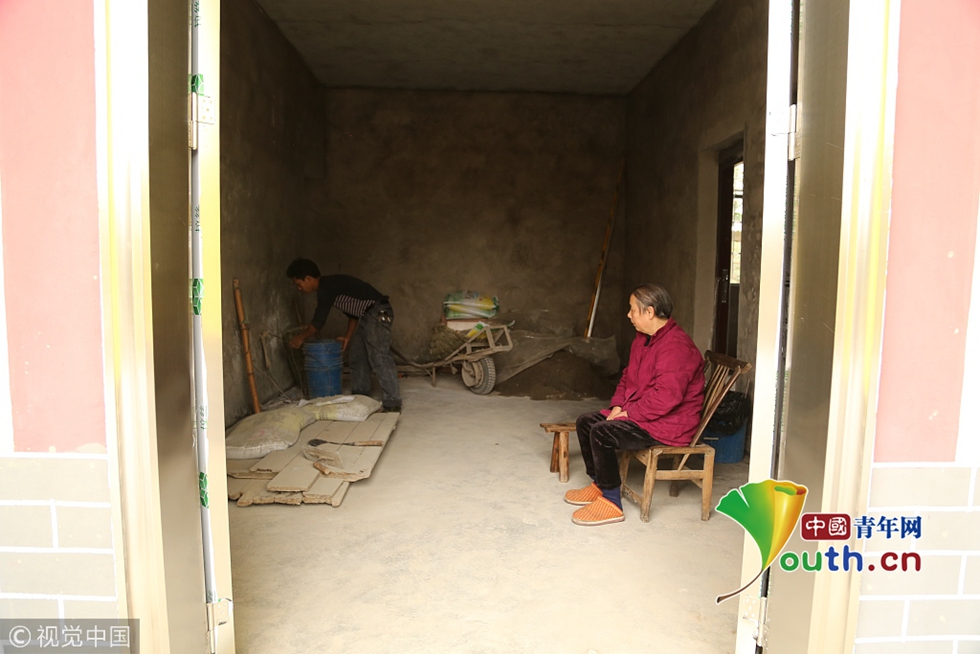 由于有王显强的精心照顾,田井贵虽然瘫痪不能走路,但从未生过大病,连感冒也很少有。今年8月,因为工厂放假,王显强背着母亲回到老家。但是老家的房子因为常年无人居住,已经倒塌。王显强母子暂时借住在叔叔王正章家里。村里的邻居们很关心王显强母子,每天总有人来和田井贵说说话,问她认不认识自己,虽然田井贵几乎不开口,但她的精神状态明显更好了。“妈妈还是喜欢在老家。”看到母亲的变化,王显强知道母亲的心思,他决心为母亲建新房。