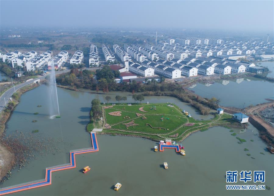 11月28日,空中俯瞰林城镇北汤村的施家边河水上乐园(无人机拍摄)。近年来,北汤村全面推进“五水共治”,停止河道内的水产养殖,并进行河道清淤,整治周边环境,另外还结合北汤生态园旅游项目,发展旅游经济,打造水上娱乐设施。现在北汤村施家边河水质清澈,环境秀美,每年为北汤村吸引游客18万人次。 新华社记者 徐昱 摄